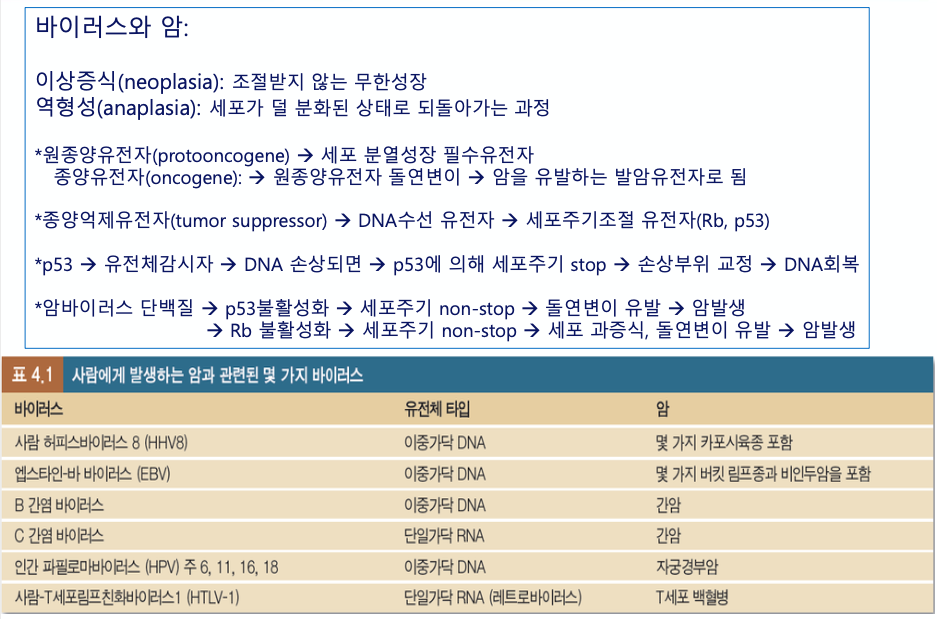 - 암세포 유도 : 바이러스가 암유발 유전자를 가지고와서 우리의 세포가 암으로 변형