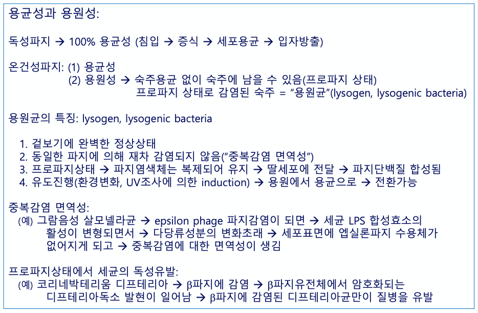 - 중복감염 면역성 : 용원균은 동일한 파지에 의해 재차 감염이 일어나지 않는다