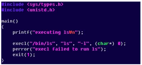 그러나 exec가 실패했다면 ls -l 프로세스가 메모리 공간에 로딩 되어지지 않기 때문에 perror가 실행 될 것이다.