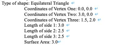 ü Compute the surface area of the equilateral triangle using the three sides