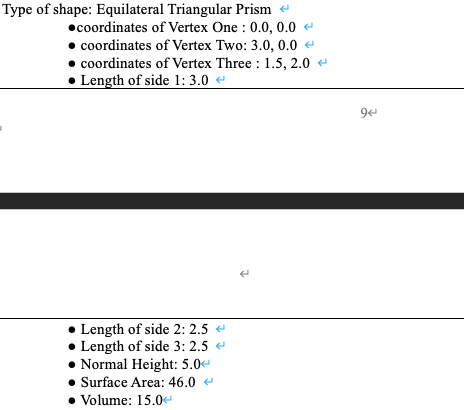 · Request the user to enter the coordinates of the three vertices of the triangle (the base shape of the prism) and assign these values to member variables of this class by setter methods.