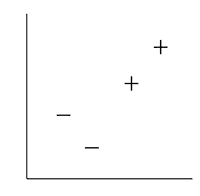 - 우리가 ′+′ 샘플과 ′−′ 샘플을 구별하고 싶다면 어떤 식으로 나눠야 하는가?