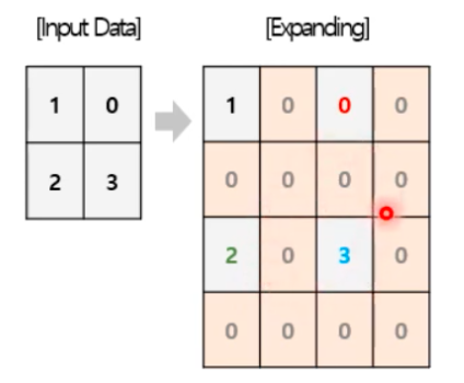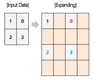 - Interpolation-based upsampling : 인접 픽셀 값을 활용해서 빈 영역을 채우는 interpolation 방법이다.