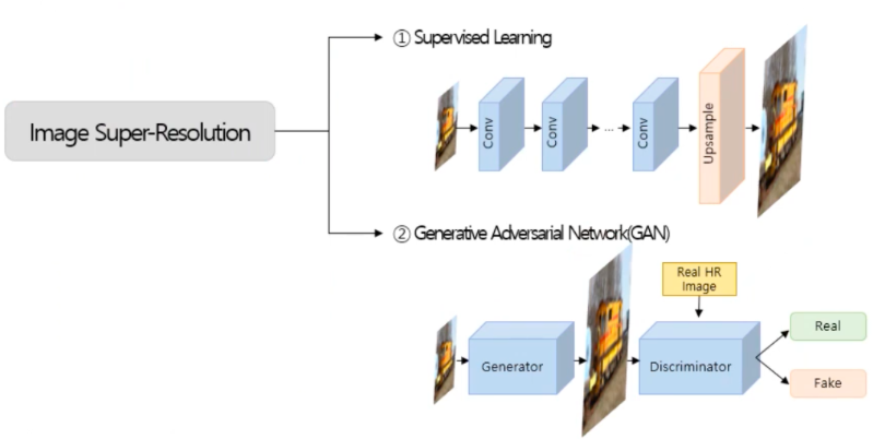 - 저해상도 이미지로 고해상도 이미지를 예측하는 Supervised Learning 방식