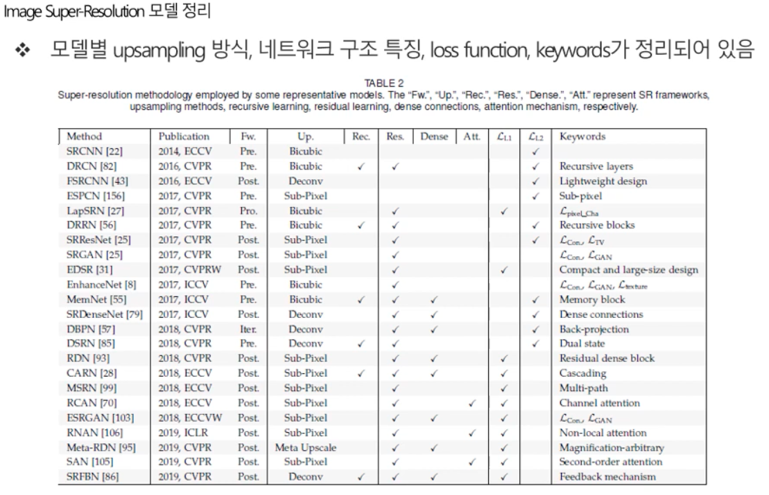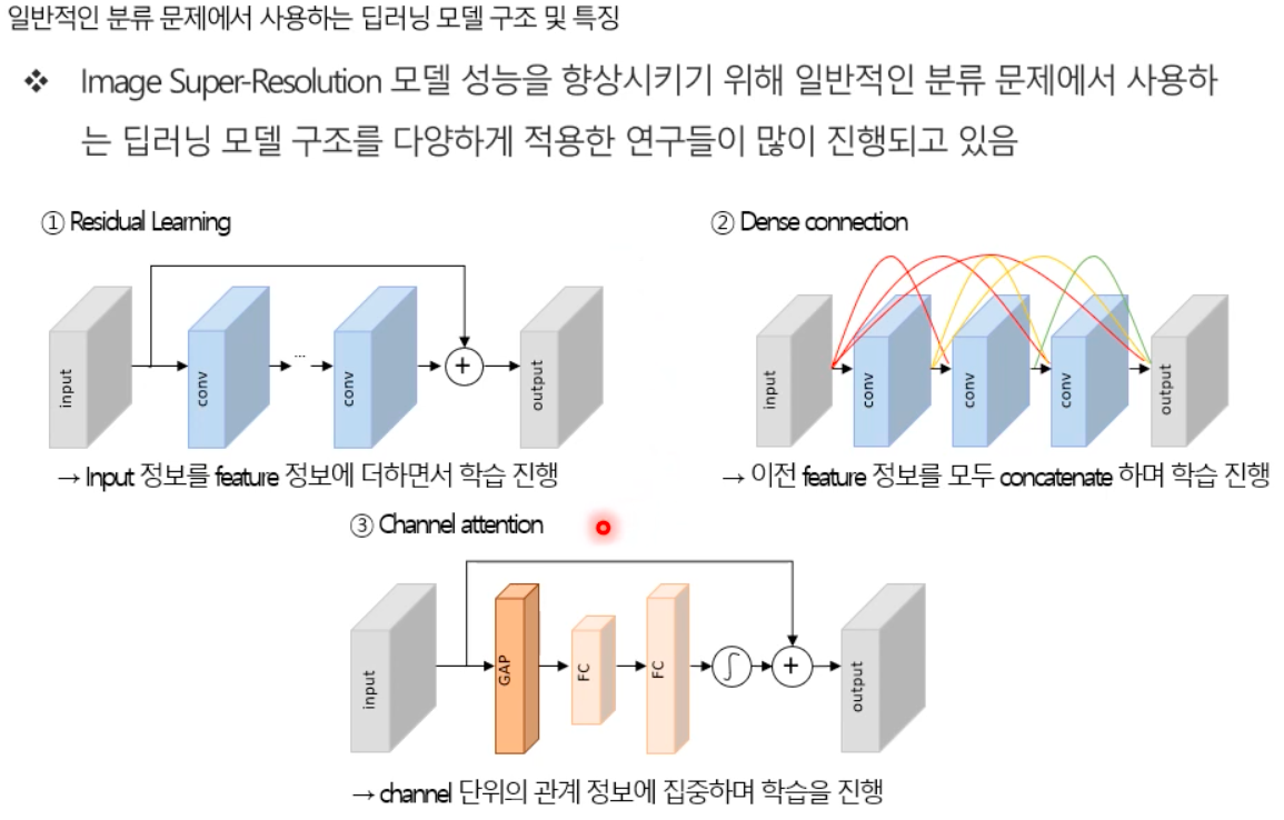 Computer Vision 영역에서 좋은 성능을 보이고 있는 다양한 딥러닝 모델을 적용해 Image Super Resolution 문제를 해결하려는 연구가 다수 진행되고 있다.