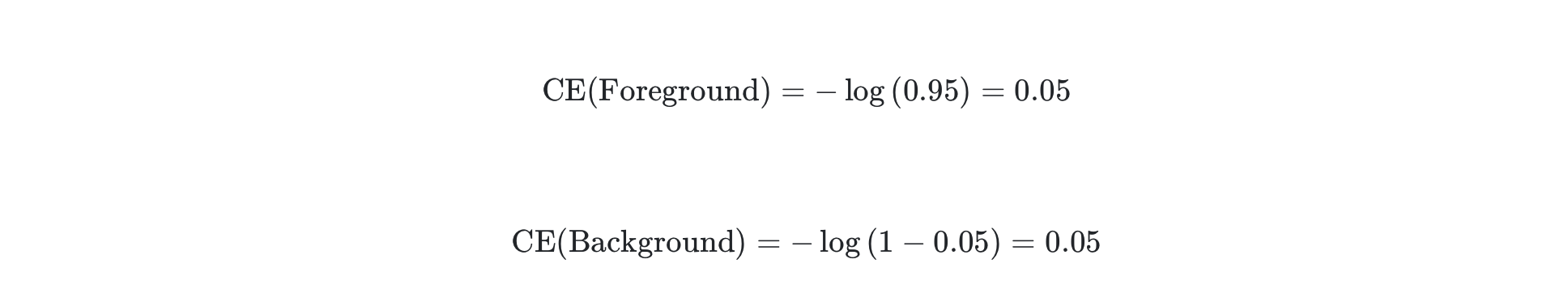 문제가 없어보이지만 여기서 발생하는 문제점은 Foregound 케이스와 Background 케이스 모두 같은 Loss 값을 가진다는 것에 있다.