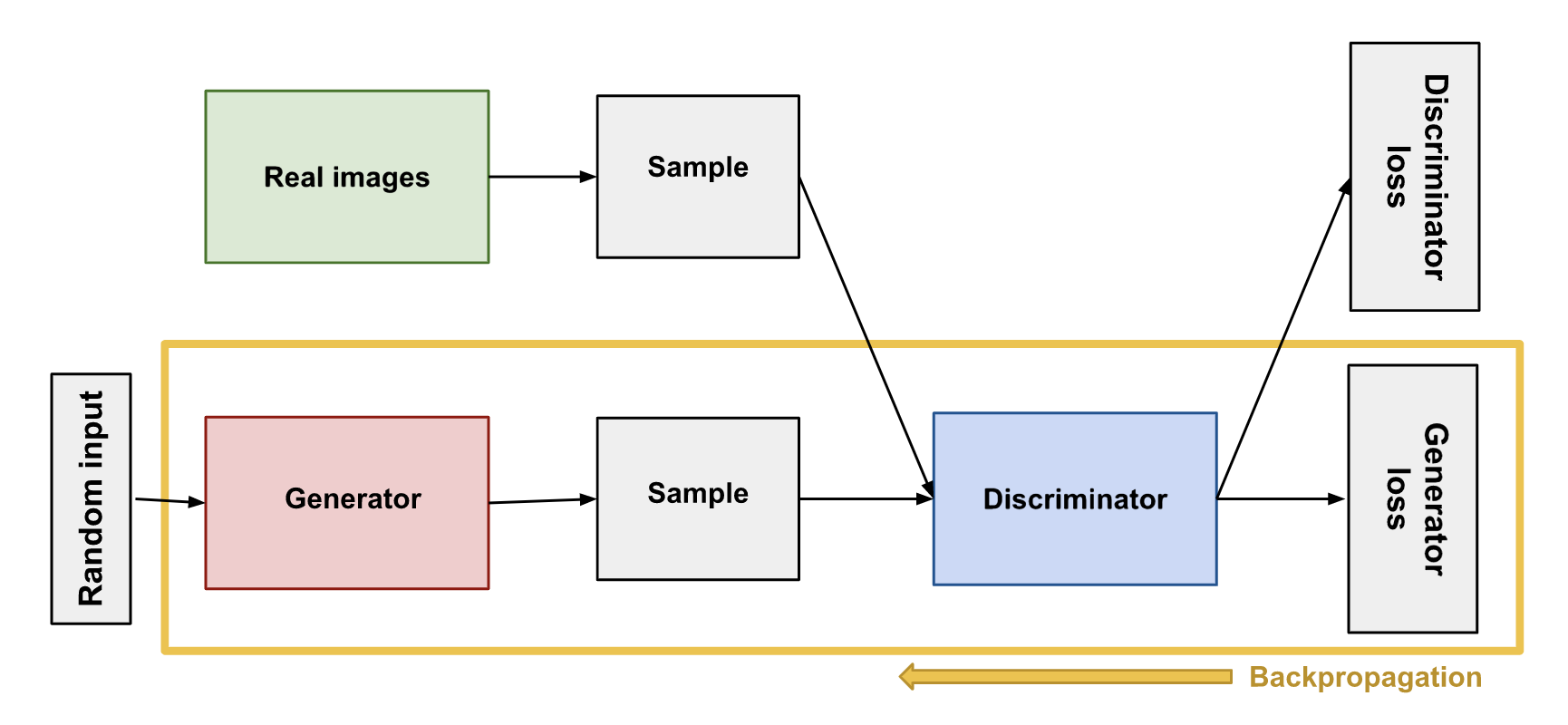 Discriminator를 헷갈리게 학습시킨다는 게 Discriminator를 건드리겠다는 것이 아니라, Discriminator의 error를 가지고 전파시켜서 Generator의 weight를 업데이트 시키겠다는 것이다. 결국 Generator 입장에서는 Discriminator가 고정되어 있지만 weight를 업데이트 시키면 Discriminator가 fake 데이터를 진짜로 생각할 것이다라는 개념이다.