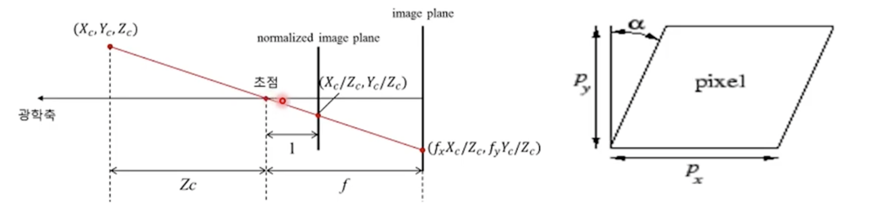 - 비대칭 계수 skew_c : 이미지 센서의 y축이 기울어진 정도