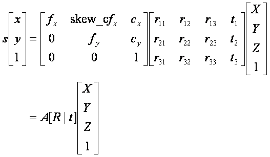 - A : 카메라 내부 파라미터(Intrinsic camera matrix)