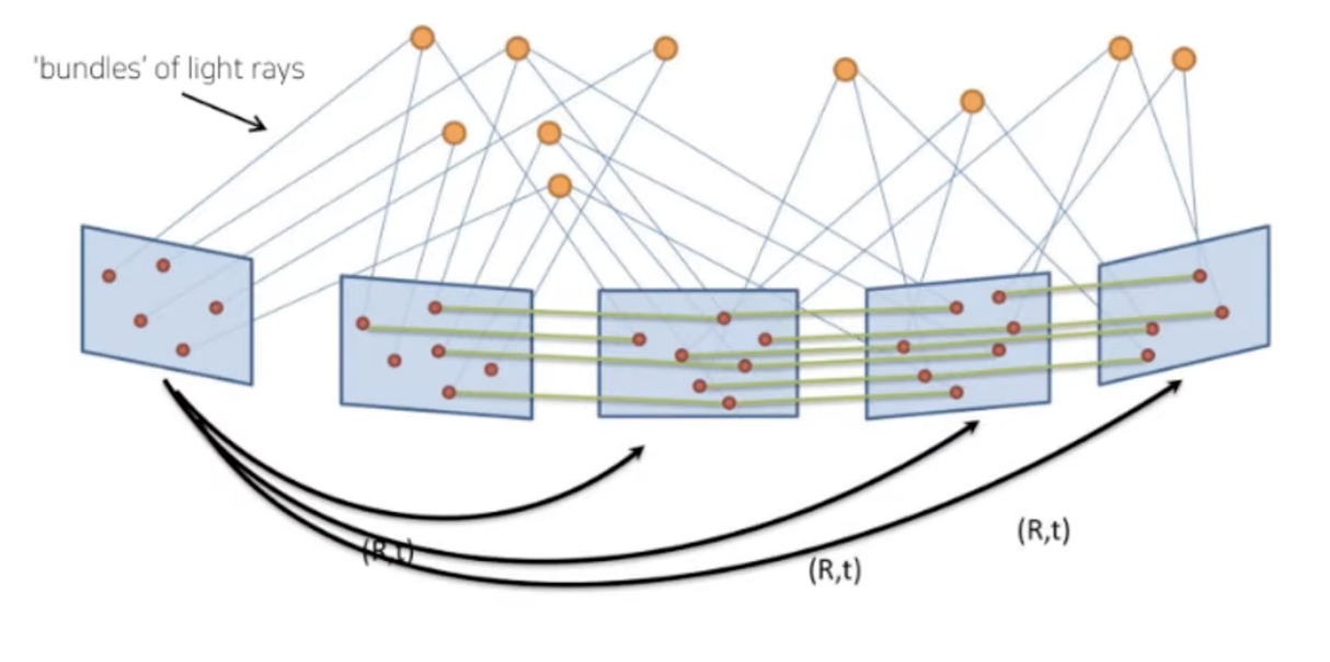 그리고 지금껏 2장의 이미지만을 봐왔지만 아래 그림처럼 실제로는 여러 개의 이미지안의 feature들의 ray들은 bundle로 묶여 있음을 확인하실 수 있습니다.