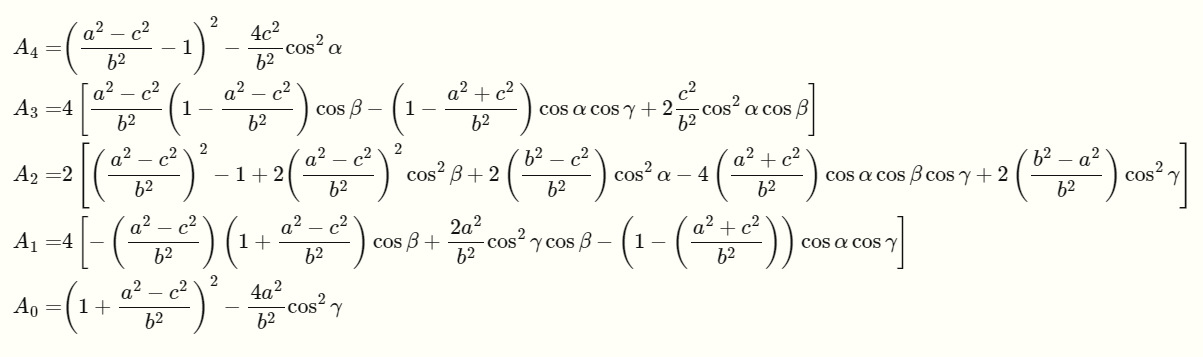 a, b, c에 대해 cosine 제 2법칙으로 위와 같은 식을 만들 수 있고,